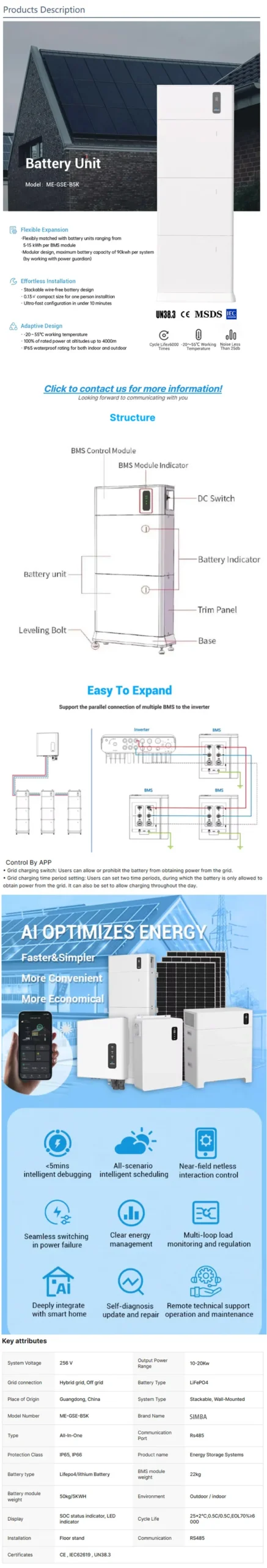 Balcony Lifepo4 Battery All in One Ip66 Outdoor Waterproof Battery 15kwh Energy Storage ESS Battery Stack
